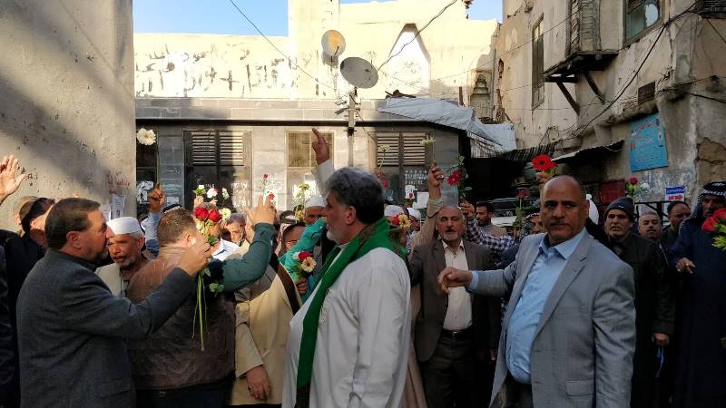 انطلق موكب الزهور من مقر الحوزره الزينية في سوريا متجها الى مرقد مولاتنا السيدة رقية عليها السلام حاملين اكاليل الورد وهاتفين باصوات عالية بتجديدهم البيعة لامير المؤمنين عليه السلام, مقدمين التهاني الى مولانا صاحب العصر والزمان الامام الحجه المنتظر عجل الله تعالى فرجه الشريف والى الامة الاسلامية جميعا بهذه الولادة الميمونه.
