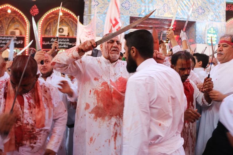 وأفاد مراسل الموقع أن جموعا غفيرة من اتباع اهل البيت عليهم السلام ومحبيهم شاركوا في إحياء شعيرة التطبير استذكارا للفاجعة الأليمة والمصيبة الراتبة وتعبيرا عن الاستعداد للتضحية والفداء في سبيل المبدأ الحق الذي خرج الحسين عليه السلام من أجله وضحى دونه بأعز ما لديه.