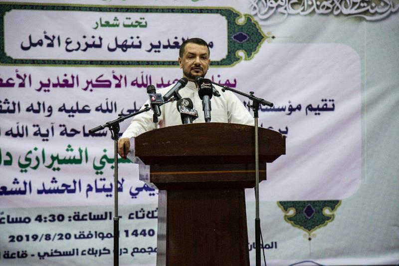وتضمن الحفل كلمات وقصائد تغنت بيوم الغدير وخلدت مواقف الشهداء البطولية وتضحياتهم ودعت إلى زيادة الاهتمام بذوي الشهداء ورعاية ابنائهم عملا والتزاما بسنة رسول الله صلى الله عليه واله وامير المؤمنين عليه السلام.