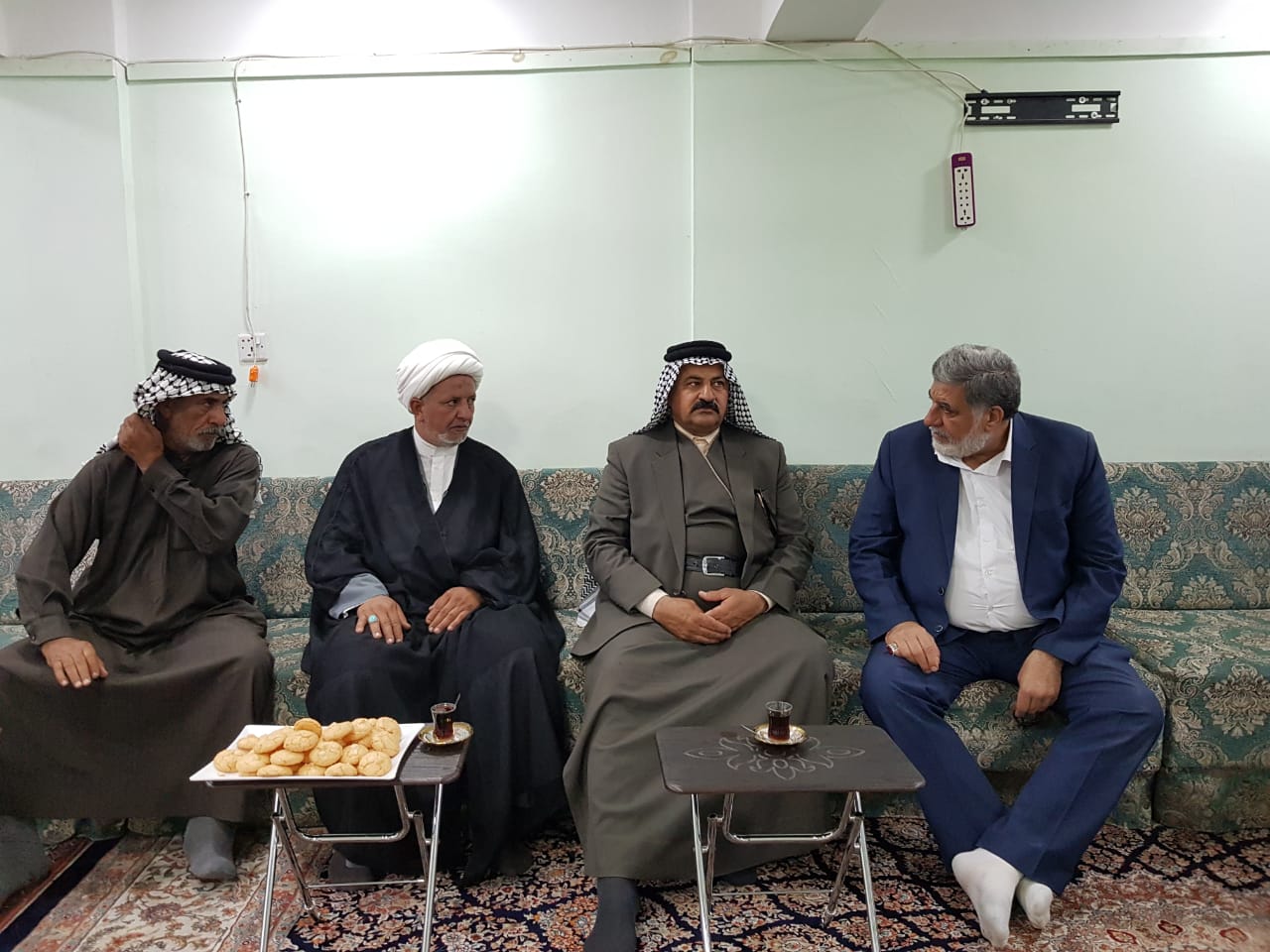 وأوضح أنه: "يتألف الوفد العشائري من الشيخ علي كامل الكشمور شيخ عام مناصير العراق/ قبيلة شمر والشيخ قحطان المناصير الشمري والحاج حمزة مطر وآخرين".